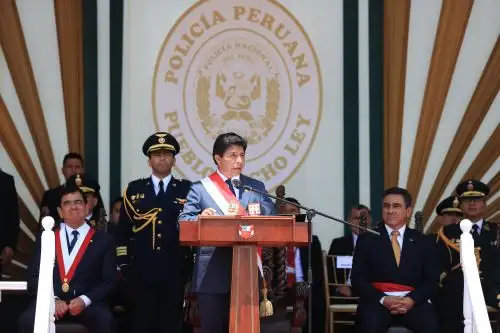 El presidente de la República, Pedro Castillo, participa en la ceremonia por el 34° aniversario de creación de la Policía Nacional del Perú (PNP).