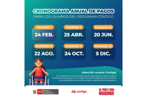 Si eres usuario del Programa Nacional Contigo, del Ministerio de Desarrollo e Inclusión Social (Midis), esta información es para ti. Ya se encuentra aprobado el cronograma oficial de pagos 2026 de la pensión no contributiva, que beneficia a personas con discapacidad severa en situación de pobreza y pobreza extrema en todo el país.