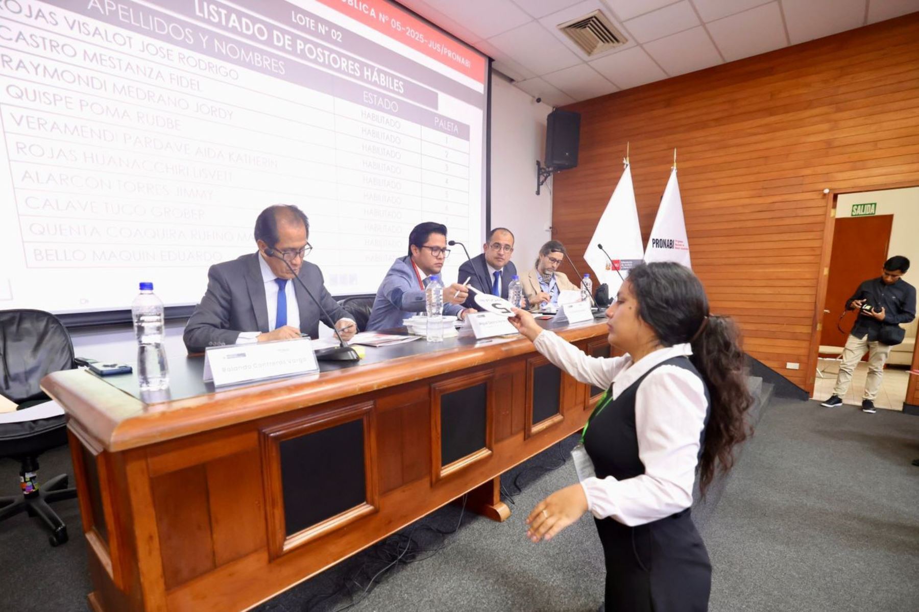 Los actos públicos se llevaron a cabo en el auditorio del Minjusdh, bajo la modalidad de subasta “a viva voz”, con la participación del Comité de Subasta del Pronabi, encargado de verificar el cumplimiento de los requisitos establecidos para los postores y de supervisar la correcta adjudicación de la buena pro de los bienes ofertados.