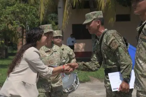 Acto seguido, el comandante general del COAR Pucallpa, coronel E.P, Edgar Huarajo Casaverde, agradeció a la Senaju por permitirles complementar las enseñanzas, valores y habilidades blandas que le imparten al personal de tropa que constantemente viene recibiendo una formación integral, la cual se fortalece, con A-Gente de Cambio, que no es solo un programa sino una propuesta firme por fortalecer el potencial transformador se la juventud.