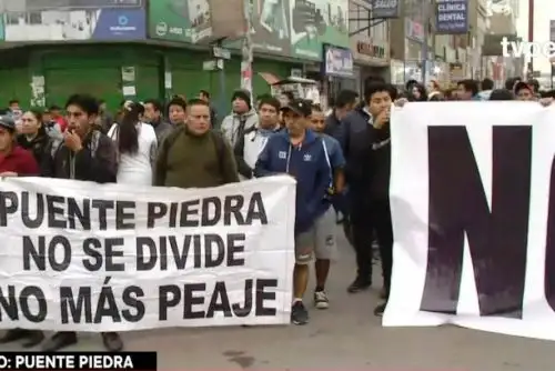 Cientos de habitantes del distrito de Puente Piedra volvieron a bloquear el tránsito vehicular en la Panamericana Norte, en el sentido norte-sur, para demandar la cancelación del peaje ubicado a la altura de Shangrilá y la anulación del contrato con la concesionaria Rutas de Lima.