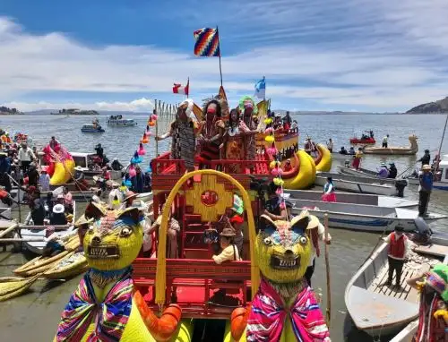 Más de 200 actores de Puno participaron de la impresionante escenificación de la salida de Manco Cápac y Mama Ocllo de las aguas del lago Titicaca. Esta actividad conmemorativa se desarrolló ayer en honor al 355 aniversario de la Ciudad Lacustre y atrajo a miles de espectadores.