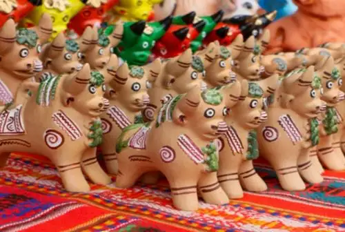 Torito de Pucará es una figura de cerámica profundamente arraigada en la cosmovisión andina. Actualmente, estos toritos se colocan en los techos de las viviendas como amuletos de protección y buena fortuna, manteniendo viva una práctica cultural transmitida de generación en generación.