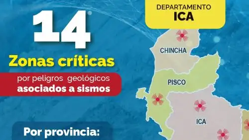 En cuanto a Ica, el organismo científico precisó que se identificaron 14 puntos críticos distribuidos en las provincias de Ica (4), Palpa (3), Pisco (3), Chincha (2) y Nasca (2).