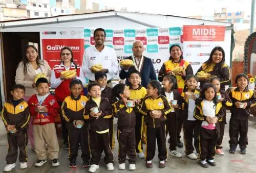 En total se han distribuido 590 unidades de yogur y 590 kilos de plátano para los escolares de inicial y primaria de las instituciones educativas Alejandro Baldomero Camacho Cuya, con cerca de 400 escolares; Niño Jesús de Praga, con 69 usuarios; la I.E. N° 346, con 94 alumnos; y el Centro de Educación Básica Especial San Antonio (CEBE), con 12 estudiantes.