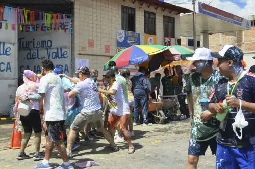 A este elemento se suman la serpentina, la pintura de colores y el talco con los cuales la gente desata su desenfreno festivo y deja huella en todo aquel que encuentre a su paso.