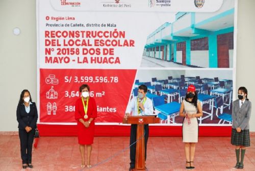 “Hoy inauguramos el colegio N.° 20158 Dos de Mayo - La Huaca, en el distrito de Mala, provincia de Cañete, que es uno de los 600 colegios reconstruidos, que fueron afectados por el Fenómeno El Niño Costero del 2017”, refirió Moreno.