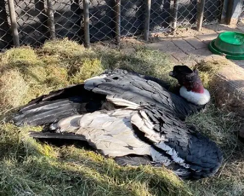 cóndor andino adulto, macho, de aproximadamente más de 10 años de edad, que se encontraba deshidratado y débil.
