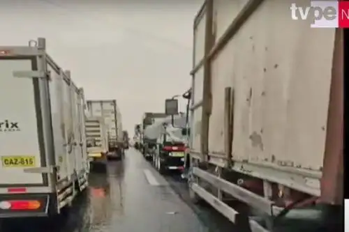 El enorme atasco de vehículos menores y de carga pesada se inicia a la altura de la playa Punta Rosa en el distrito de Punta Negra.