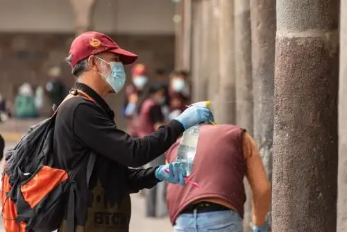 Julio Sierra Palomino, responsable de la DDC de Cusco, dirigió la jornada de limpieza y explicó que los componentes químicos presentes en tintes, espumas y pinturas como es el caso de la pintura tipo corrector utilizada en la calle Loreto, penetran en la superficie rugosa de la piedra, alterando sus características originales y genera un deterioro que, en muchos casos, resulta irreversible.