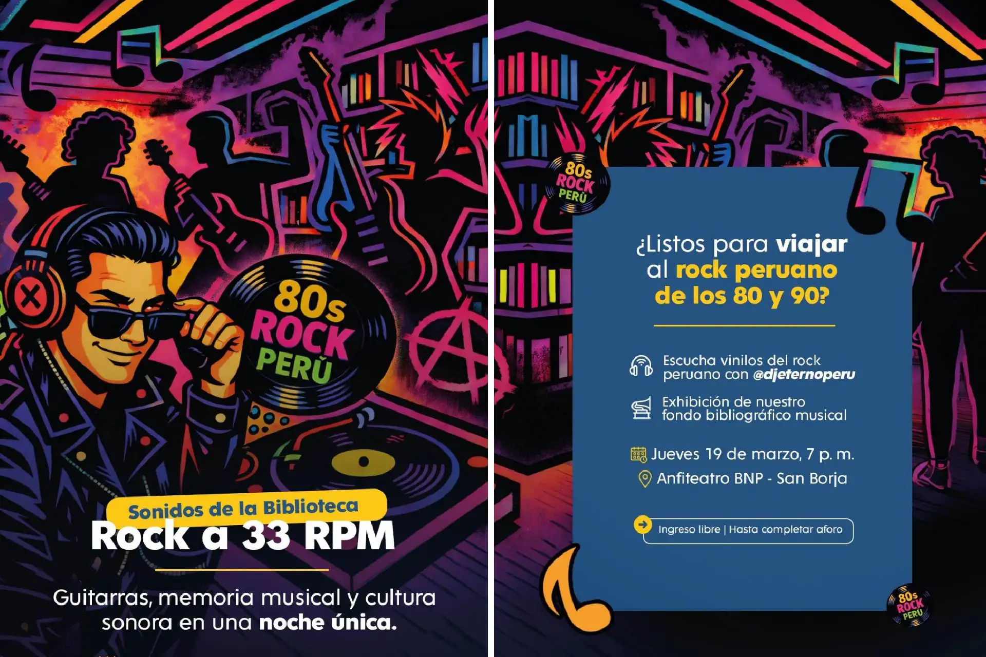 La nostalgia del rock peruano de las décadas de 1980 y 1990 volverá a sonar en formato original este jueves 19 de marzo en la sesión especial ‘Rock a 33 RPM’, organizada por la Biblioteca Nacional del Perú (BNP), que reunirá música, vinilos y figuras emblemáticas del cancionero nacional.