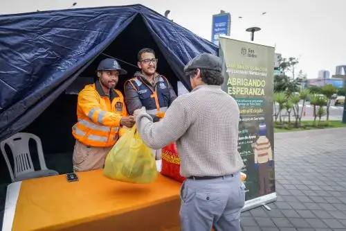 La Municipalidad de San Isidro instaló carpas de ayuda en puntos estratégicos del distrito con el objetivo de recolectar donaciones destinadas a pobladores de Ticlio Chico, en el sur de Lima, afectados por las bajas temperaturas.