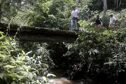 Al llegar, dos policías y una caseta de vigilancia dan la bienvenida a los visitantes. La caminata, de unos 850 metros, atraviesa senderos rodeados de jardines coloridos, piedras, árboles frondosos y una gran variedad de aves.