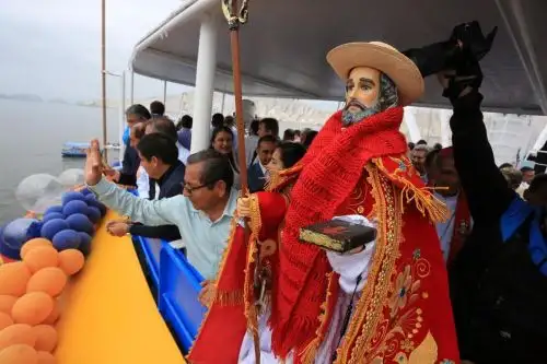 Decenas de fieles se congregaron hoy en el puerto de Chimbote para participar en la tradicional procesión marítima que realiza la imagen de San Pedrito, considerado el Patrón de los Pescadores.