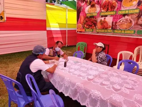 A fin de salvaguardar la salud de la población durante los días de la festividad por San Pedro, el equipo técnico de la Red de Salud Pacífico Norte realizó una inspección sanitaria a 17 puestos de comida de la Feria de Integración Regional que se realiza en Chimbote, en el marco de su fiesta patronal.