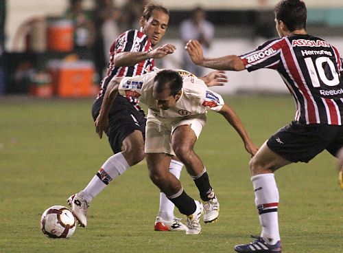 A los 18 minutos, Sao Paulo aprovechó una mala salida del portero Llontop, pero el cabezazo de Rodrigo Souto pegó en el horizontal, tras el cobro de un tiro de esquina.