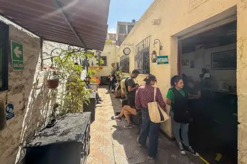 Encontrar una mesa vacía en la picantería La Capitana, no es fácil. La gente hace cola en la puerta en espera de una mesa para disfrutar la rica comida arequipeña que se prepara en este local desde hace 126 años, donde el cuy chactao, chupe de camarones, rocoto relleno y picantes son los platos más pedidos por los comensales.