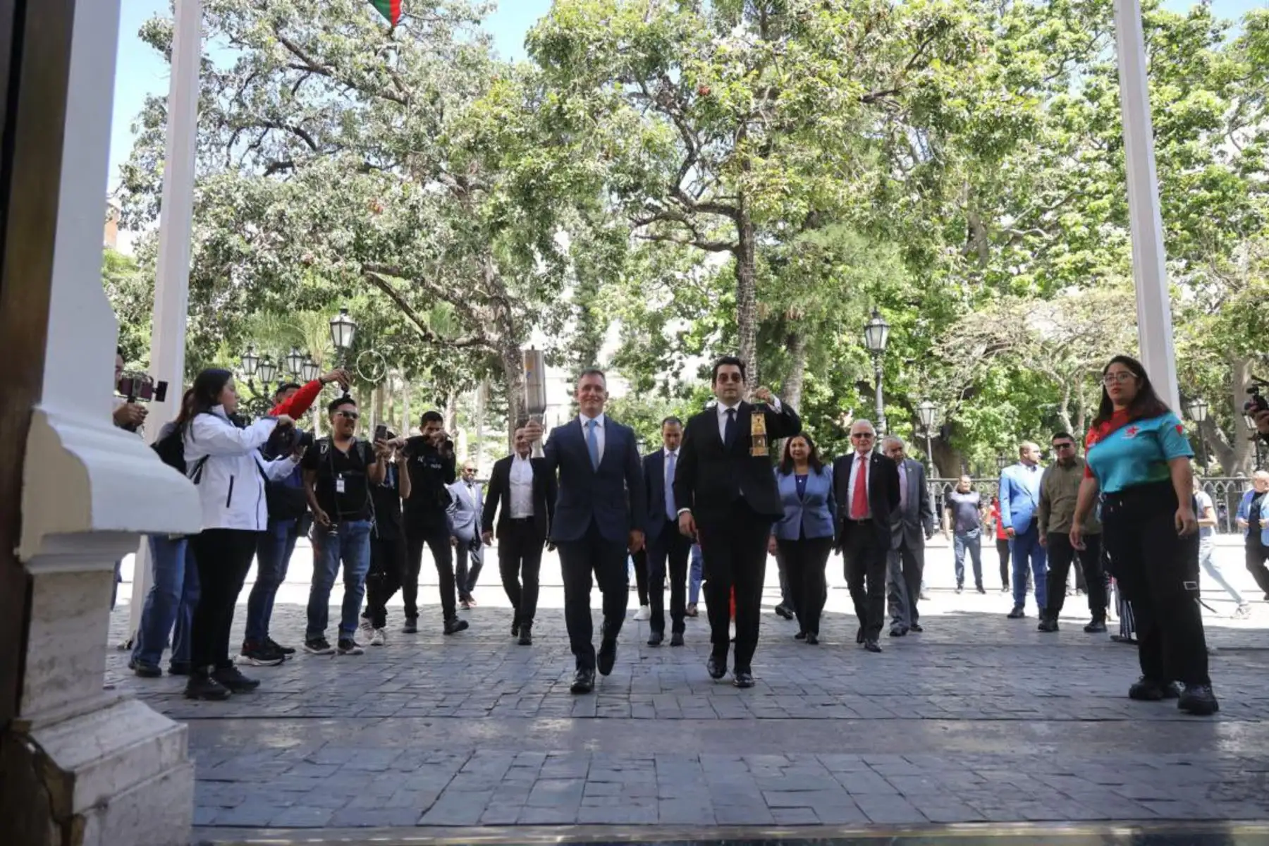 Durante la ceremonia, el fuego bolivariano pasó por las manos de destacadas figuras del deporte y autoridades, entre ellas Baltazar Medina, presidente de la Organización Deportiva Bolivariana (ODEBO). Posteriormente, el presidente del Comité Olímpico Peruano (COP), Renzo Manyari, recibió la antorcha y será el encargado de trasladarla a Lima, donde comenzará su recorrido simbólico rumbo a la inauguración de los Juegos.