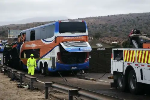 Al menos seis personas murieron y alrededor de cuarenta resultaron heridas de diversa gravedad al colisionar esta madrugada cuatro autobuses en la denominada Ruta Cinco, la autopista principal que recorre Chile de norte a sur y forma parte de la Panamericana.