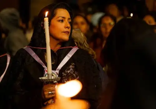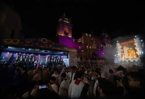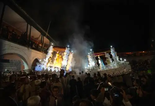 Desde tempranas horas, las calles del centro histórico de Ayacucho se transformaron en escenarios de fe. Alfombras multicolores, velas encendidas y oraciones susurradas acompañaron el paso solemne de las imágenes sagradas, que partieron a las 20:00 horas desde el Templo del Convento de Santa Clara.