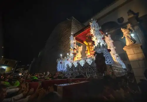 Las andas se acercaron y se inclinaron mutuamente, como si entablaran un diálogo silencioso, generando un ambiente de profunda espiritualidad que conmovió hasta las lágrimas a muchos asistentes.