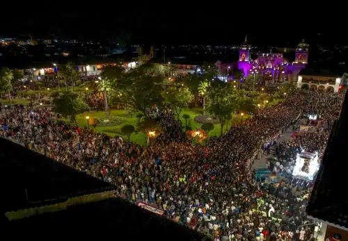 El clímax de la noche se vivió en las inmediaciones de la histórica Casona del Marqués de Mosobamba, donde el Encuentro alcanzó su máxima expresión de dramatismo y devoción. Allí, las familias, junto a turistas nacionales y extranjeros, reafirmaron su fe en una tradición que trasciende generaciones.