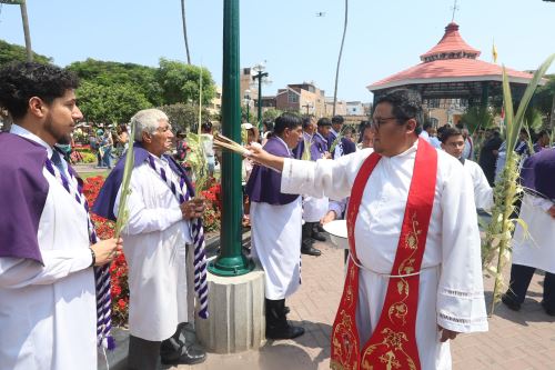 La tradicional bendición de palmas se llevó en la Plaza de Armas de Surco, frente a la Iglesia Santiago Apóstol, y estuvo a cargo del padre Julio Cesar Cahuana y el vicario Hernán Vega.