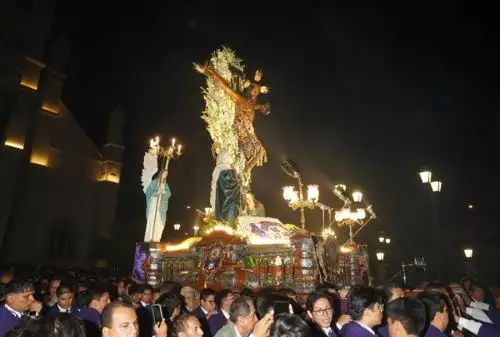 A las siete de la noche del Viernes Santo, la imagen del Señor de Luren salió de su santuario para iniciar su recorrido procesional por las calles y avenidas de Ica.