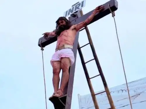 “No es fácil interpretar a Cristo, requiere de preparación física y espiritual”, dice el actor Erickson López Chanzape, quien interpreta desde hace 10 años a Jesús en la escenificación del vía crucis en la ciudad de Lamas, región San Martín. El hombre de barba y cabello negro confiesa.