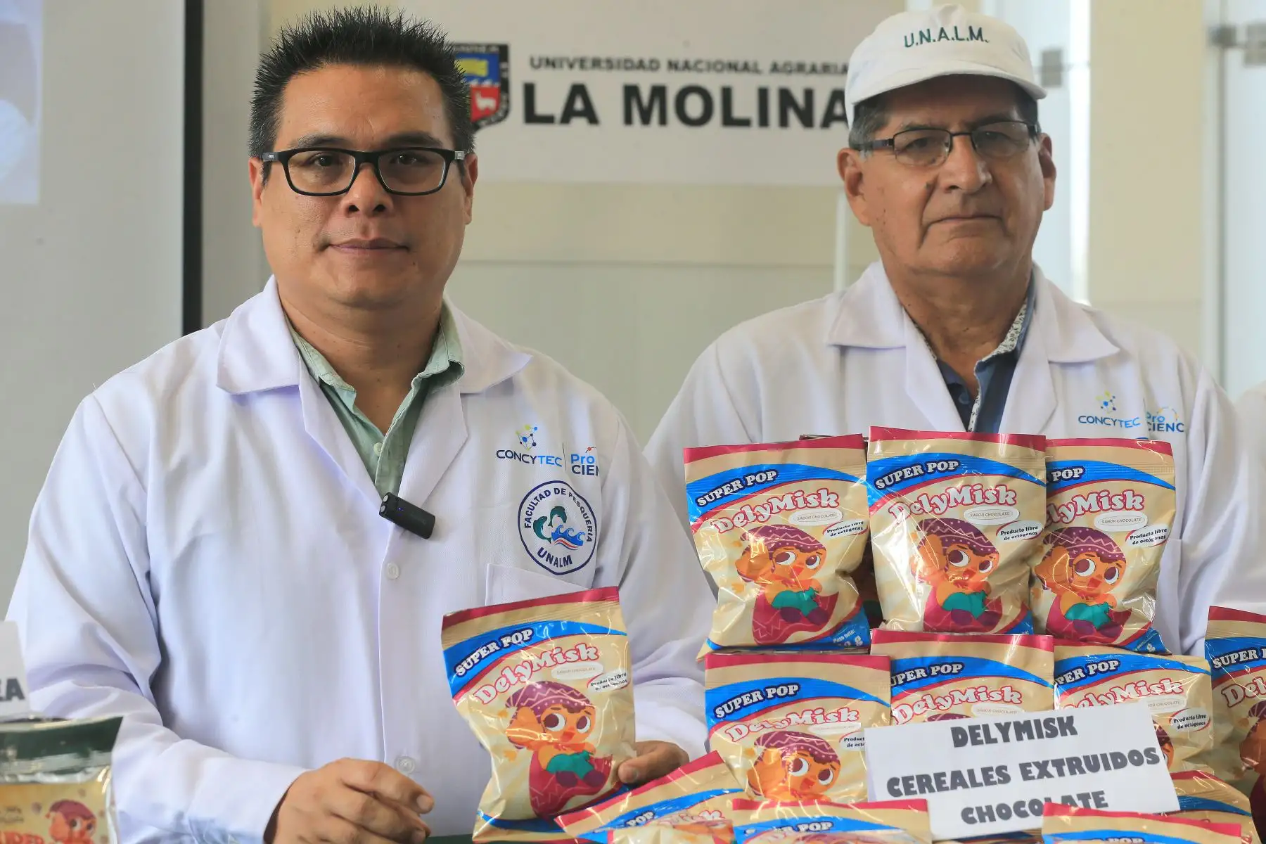 Científicos de la UNALM muestran las presentaciones de Delymisk. (Foto: ANDINA/ Héctor Vinces)