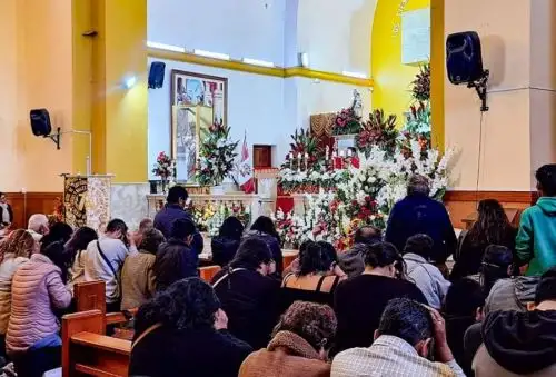 A las 11:00 de la mañana comenzó la “Misa de fiesta”, a cargo del obispo de la Diócesis de Tacna y Moquegua, monseñor Marco Antonio Cortez Lara, quien manifestó que el verdadero significado de ser peregrino es “saber a dónde llegar, hacia donde llevar nuestras vidas”.