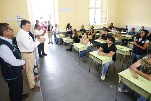 El ministro de Salud, Juan Carlos Velasco Guerrero, supervisó el desarrollo de la evaluación Serums 2026 desde las aulas del emblemático colegio Nuestra Señora de Guadalupe.