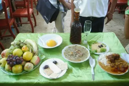 La tradición gastronómica mantiene una estructura simbólica que combina sabores dulces y salados. Los siete potajes que se preparan en Catacaos son: