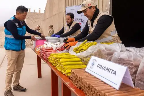 El lote, integrado por cartuchos de dinamita semigelatinosa, detonadores, fulminante común, nitrato de amonio estabilizado, anfo, mecha de seguridad, hidrogel, cordón detonante y emulsión explosiva encartuchada, fue trasladado bajo estrictas medidas de seguridad hasta el Centro de Municiones del Ejército (Cemune), en la provincia de Pisco, región Ica, para su disposición final.