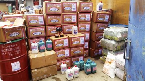 Detalló que el personal de la Sunat inmovilizó ácido clorhídrico, hipoclorito de sodio y disolventes (thinner, hidróxido y óxido de calcio).
