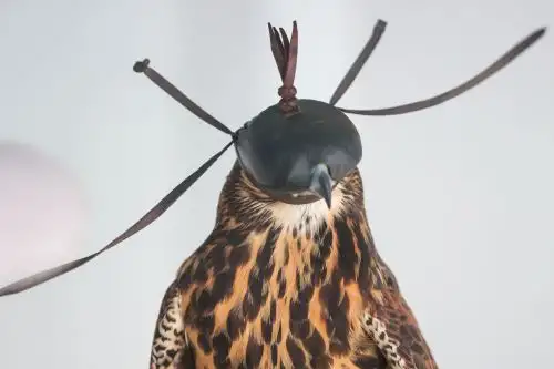 Para amansar a estas aves, el cetrero usa la caperuza, una herramienta técnica que reduce el estrés del ave durante su transporte y entrenamiento.