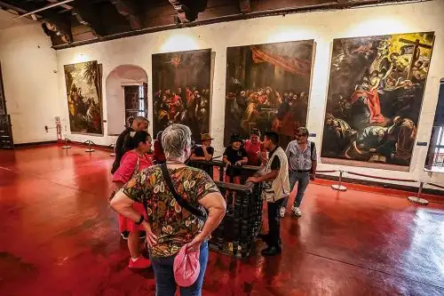 Pero los cuadros con mayor carga simbólica para los creyentes son los últimos: El camino al calvario y La crucifixión. “Cuando uno visita de manera metódica esta sala, paso a paso se da la transfiguración espiritual y, al mismo tiempo, el seguimiento cronológico de los pasajes últimos de la vida de Cristo”, explica el historiador.