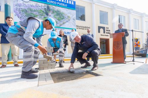 Con la colocación de las primeras piezas de adoquín, se inició el proyecto de la Supermanzana de Surco Pueblo, obra que permitirá la recuperación integral del centro histórico del distrito, declarado Zona Monumental en 1989 por el Instituto Nacional de Cultura.