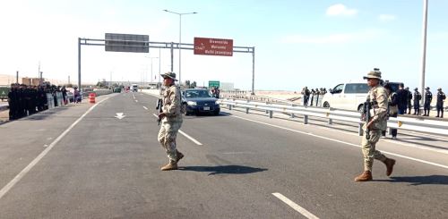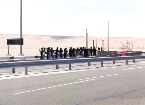 En la Línea de la Concordia se ubican más de 30 efectivos policiales que custodian ambos carriles de la vía, por el lado de Chile también se observa presencia de carabineros. Personal del Ejército del Perú continúa con la vigilancia en la pampa.