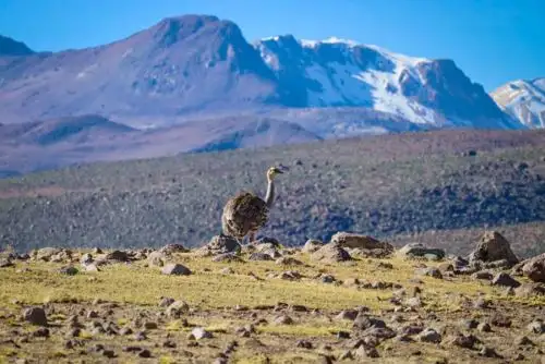El suri es un ave no voladora de gran tamaño, con patas y cuello largos, adaptada a los Andes, que se caracteriza por su plumaje gris parduzco con puntas blancas y su habilidad para correr a gran velocidad.