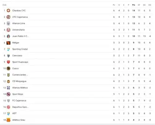 A falta de dos partidos para culminar la sexta fecha del Torneo Apertura de la Liga 1, la tabla de posiciones comenzó a moverse y colocó a Los Chankas como líder solitario y a Universitario en la cuarta casilla tras perder su invicto en Andahuaylas.