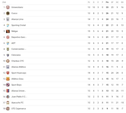 Con ese resultado, Garcilaso marcha sexto, mientras que los celestes se ubican cuartos, detrás de Alianza Lima.
