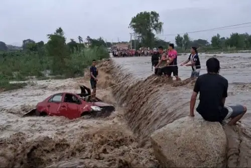 La fuerte corriente, producto de las intensas lluvias registradas en la región, arrastró el vehículo provocando su desaparición en cuestión de segundos, ante la mirada impotente de testigos.
