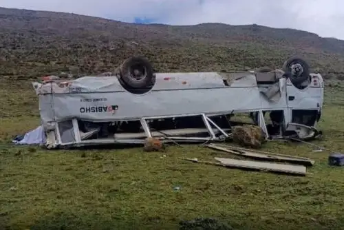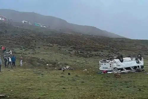 Un vehículo perteneciente a una empresa de nombre 'Abisho', se despistó al promediar las 05:00 horas y volcó unos ochenta metros cuesta abajo. Trasladaba a un aproximado de 27 turistas, informaron efectivos policiales.