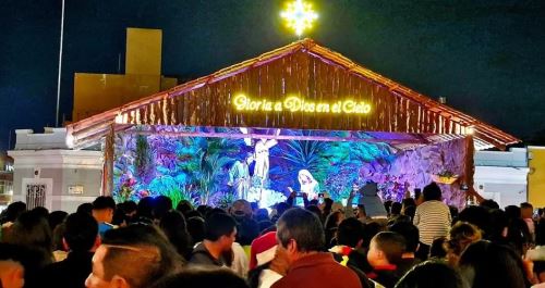 Cientos de familias abarrotaron este domingo 14 de diciembre la Plaza Mayor de Trujillo, capital de la región La Libertad, para presenciar el encendido de árboles y nacimientos como parte de la edición 25 del Festival de Luces y Colores.