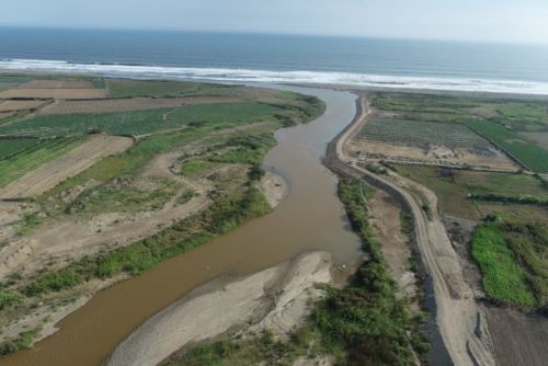 Con ayuda de maquinaria pesada, personal de Defensa Civil del Gobierno Regional de La Libertad culminó los trabajos de limpieza y descolmatación del río Moche, específicamente en la zona donde el cauce desemboca en el mar, conocido como sector La Bocana, en el distrito de Víctor Larco, provincia de Trujillo.