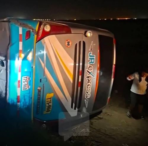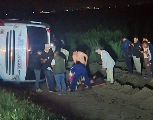 Al menos 13 personas resultaron heridas tras el despiste de un bus interprovincial de la empresa Jr Express registrada en Trujillo. ANDINA/Difusión