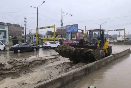 Como parte de las acciones de envió maquinaria pesada hacia la zona alta del distrito de La Esperanza, donde la activación de la quebrada Indoamérica afectó  varias calles. Allí un cargador frontal y un volquete se encuentran trabajando en limpieza y encauzamiento.
