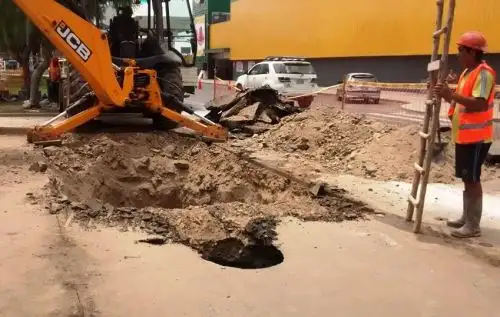 “La causa del problema, según hemos investigado, tiene que ver con las lluvias que caen en la ciudad desde hace unos días y también debido a que en muchos puntos de la ciudad se han abierto los buzones para que el agua discurra al desagüe y ello ocasionó la fractura de la tubería primaria que afecta a las pistas”, indicó el gerente de Sedalib, Óscar Delgado, tras la supervisión.