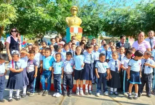 En el centro poblado de Quebrada Seca, 48 escolares de los niveles Inicial y Primaria de la Institución Educativa 101 José Abelardo Quiñones presentaron honores y saludo al héroe de la Fuerza Aérea del Perú (FAP), que ofrendó su vida en defensa de la integridad territorial nacional durante el conflicto armado con Ecuador en 1941.